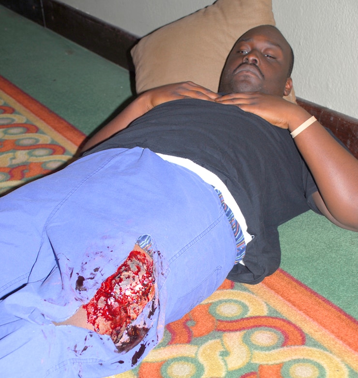 "It was a great opportunity for me to be a part of," said Air Force Staff Sgt. Gilbert Emmrid, who played the role of a patient with a femur fracture. "Anytime I can help others get better at what they do, I want to be there."