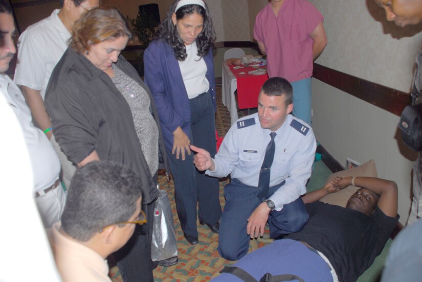 Members from the Joint Task Force Bravo Medical Element presented a medical trauma refresher and trauma simulations to more than 200 Honduran medical professionals at an annual medical conference in the Honduran capital July 8.