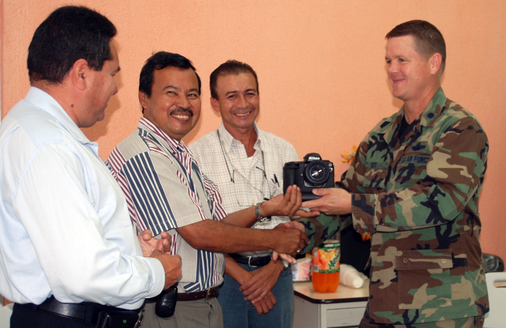 Air Force Lt. Col. Lawrence Ott, JTF-Bravo deputy commander, presented an assortment of lenses and digital and 35mm cameras to the students at a small ceremony prior to class.